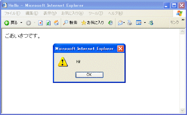 次の1行がJavaScriptのプログラムで, これがダイアログボックスを表示するものです。