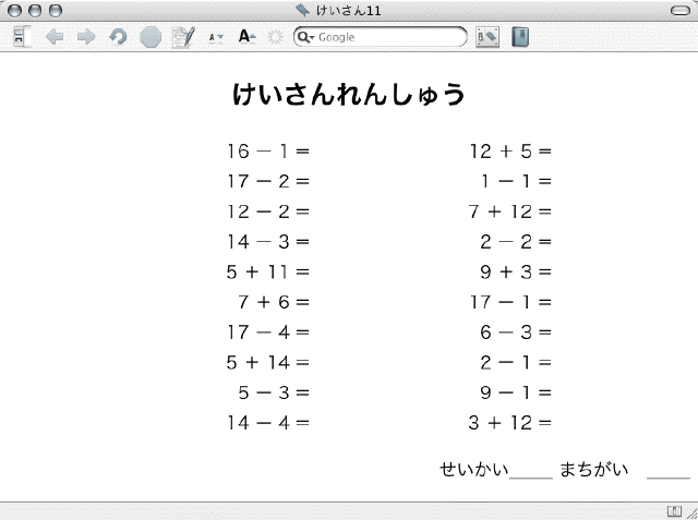 まず, 第1段階として図8-5のようなページを考えてみましょう。 小学校でよく配られるような計算練習の「プリント」のようなページです。