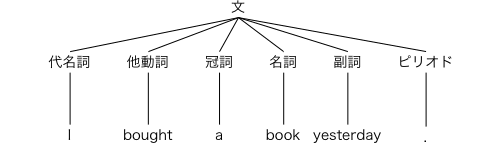 このような文法規則を使って,上の文(I bought a book yesterday.)を「解析」して見ましょう。