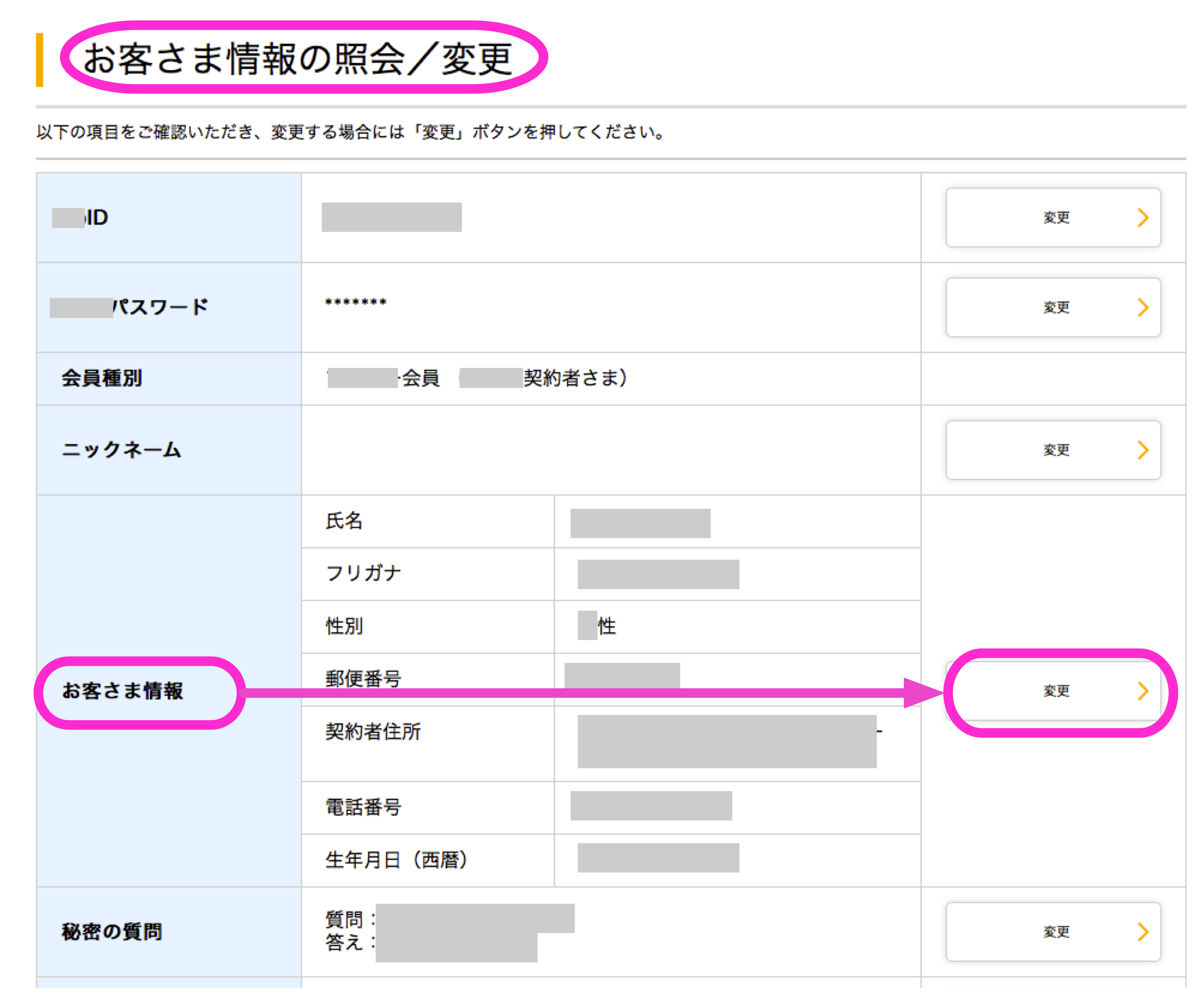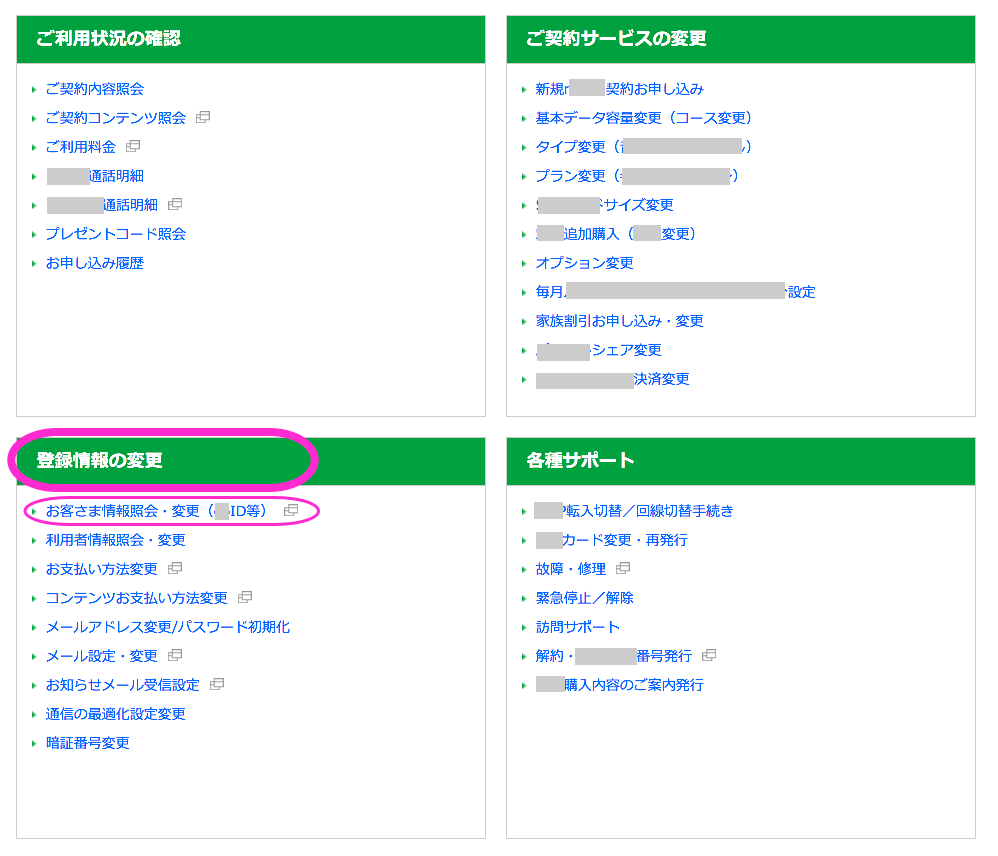 「登録情報の変更/サポート」の下に「お客様情報照会・変更」というメニューを載せておいてくれれば、無駄な時間を費やさずに済んだのに*3。