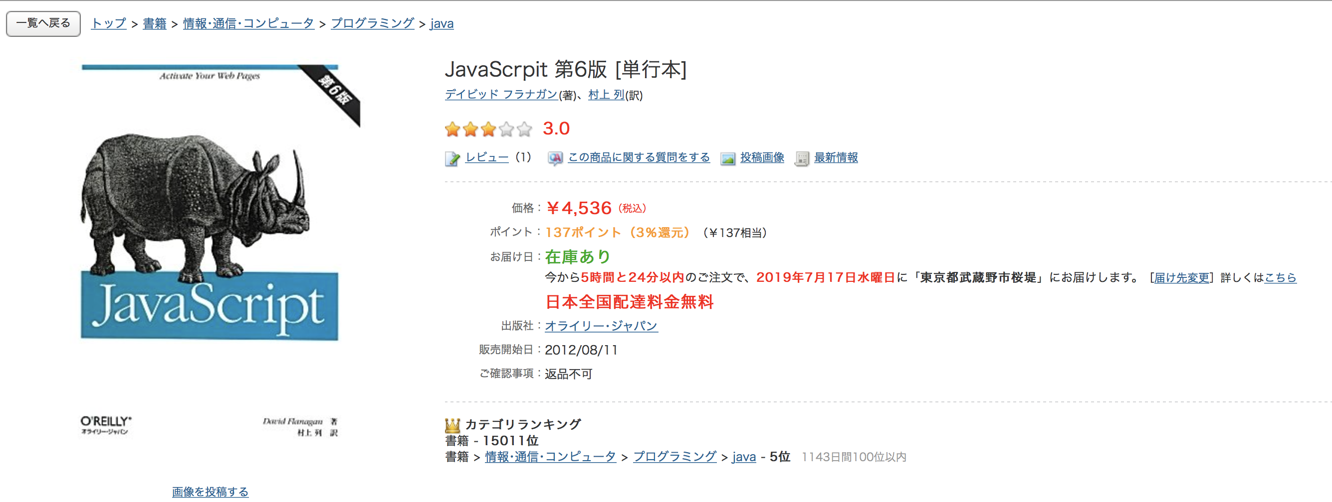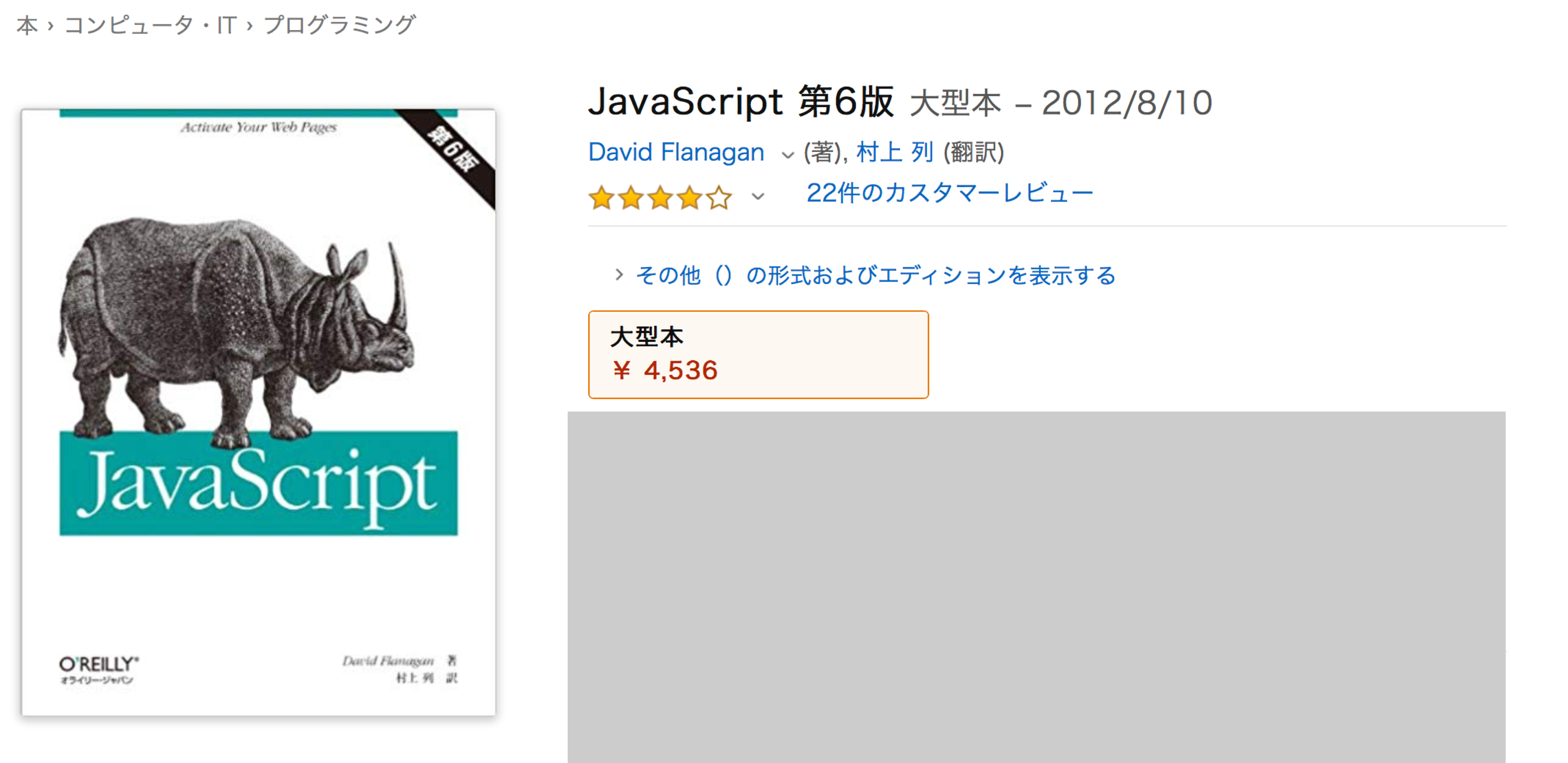 [*5] 実は、訳者が「ご要望ページ」から「『初めてのJavaScript』の分類を変えてくれ〜」と依頼した結果、こう変わったのだ(対応はすごく早かった)。すべてのJavaScirpt本に関して同様の要望を出せば、不当なるjavaの支配下からJavaScript本を解放してやれる日が到来することになるだろう。