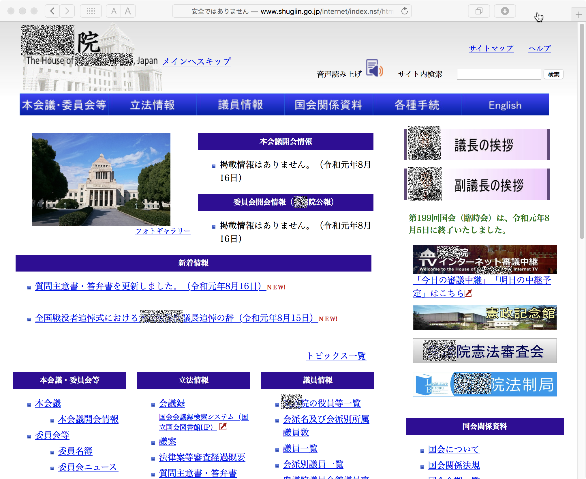 何の意味かわからなかったが、ひとまずクリックしてみると、ナビゲーション部分が隠れて「本会議開会情報」が一番上に表示された。