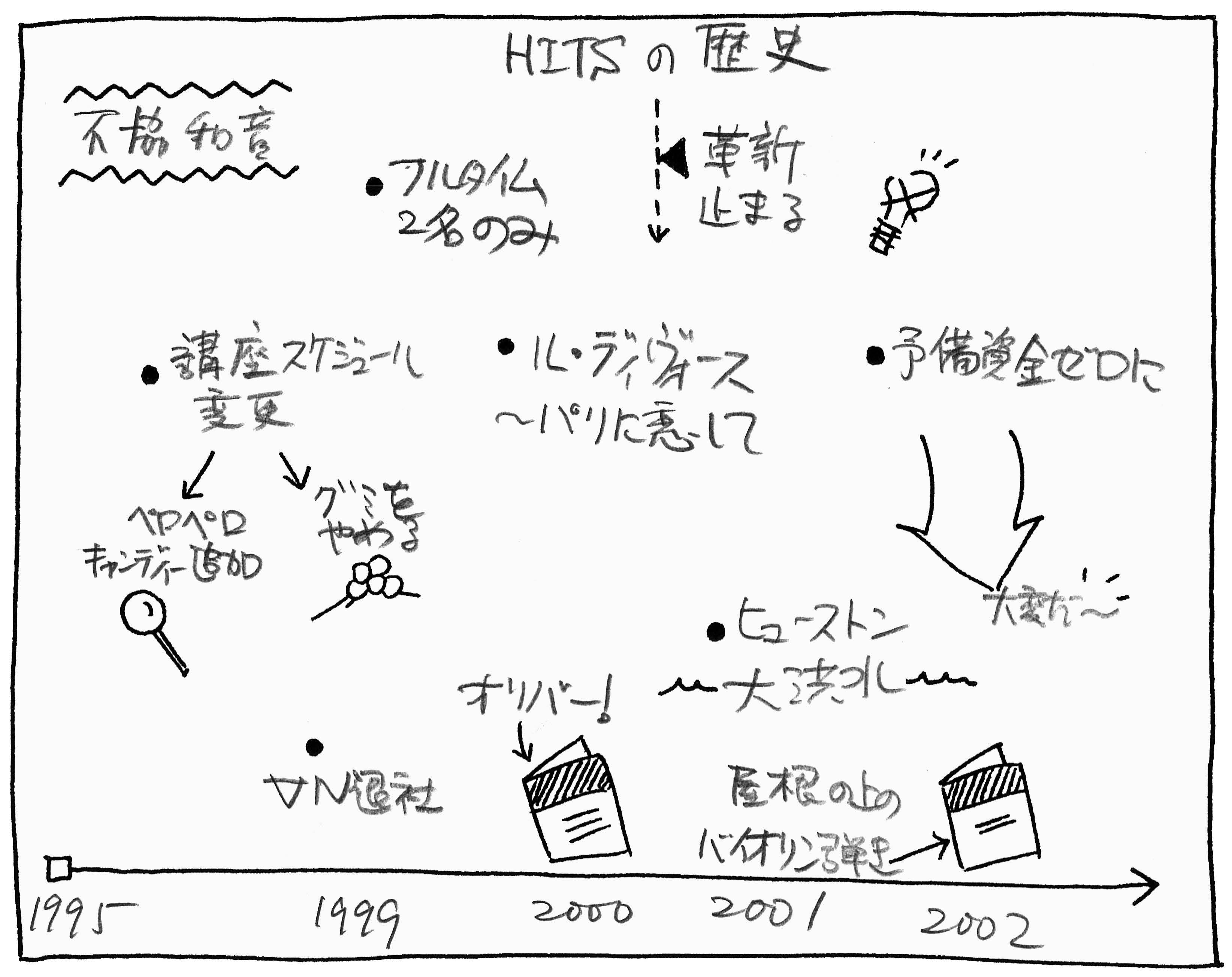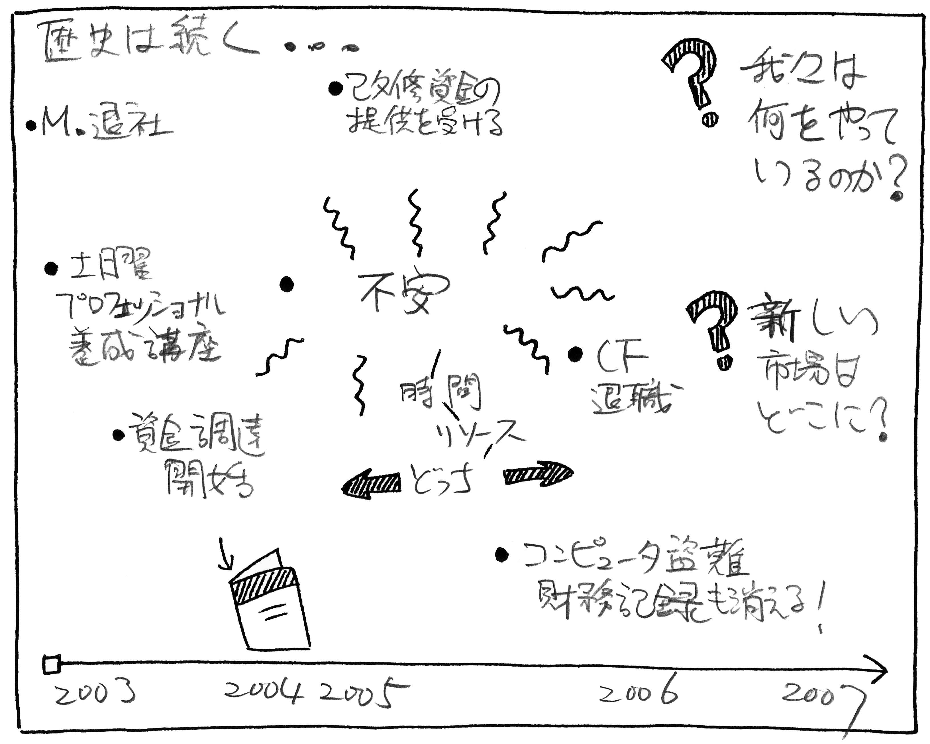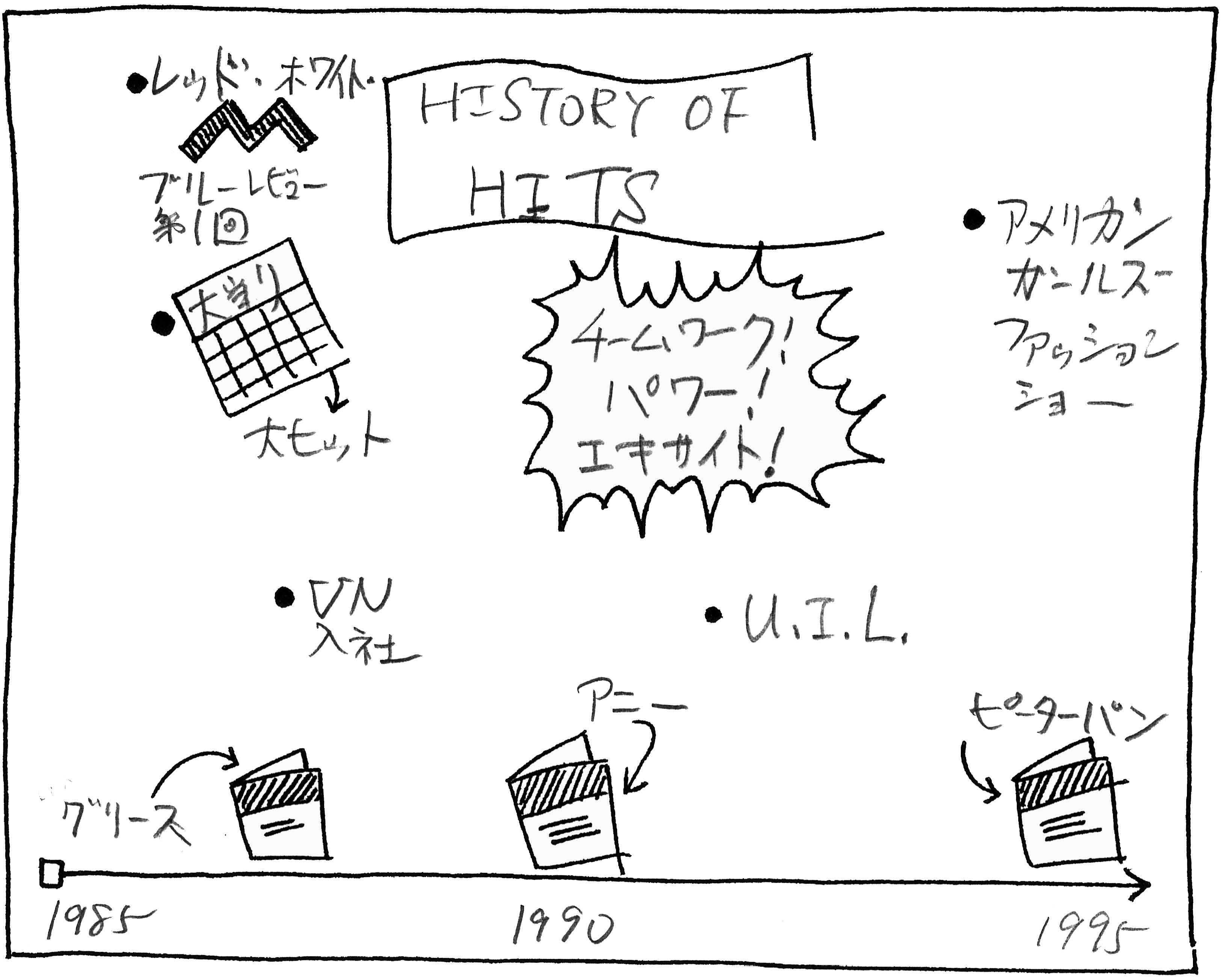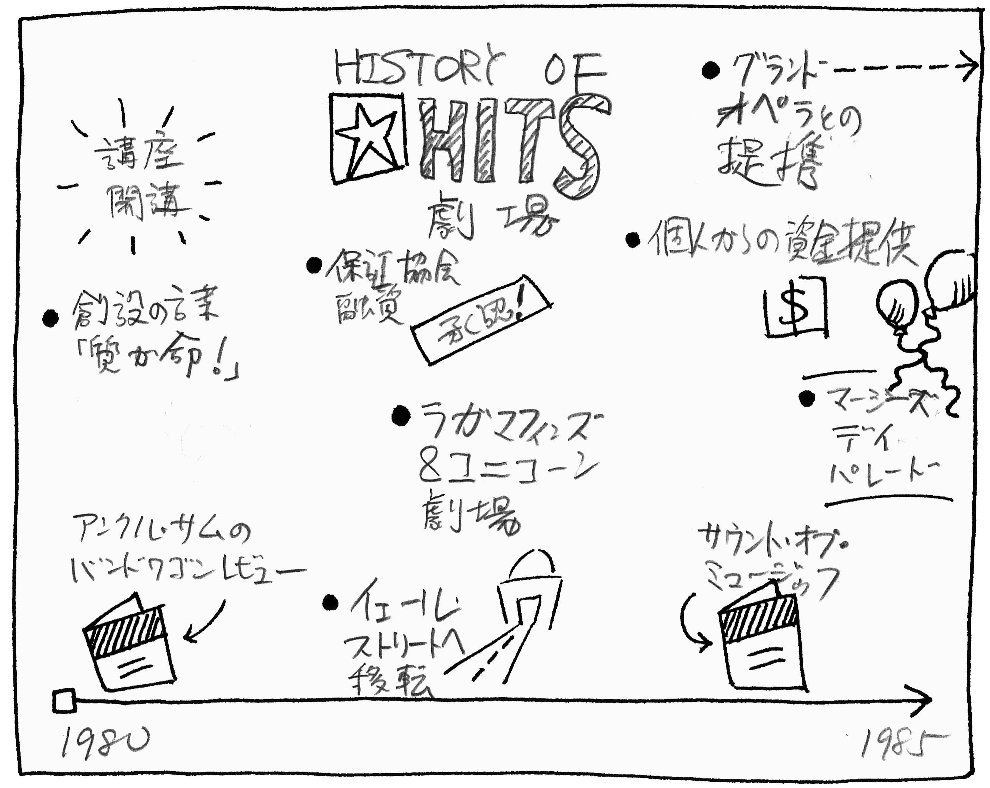参加者に次の事柄について質問をします。その答えをもとに、字や絵を使ってヒストリー