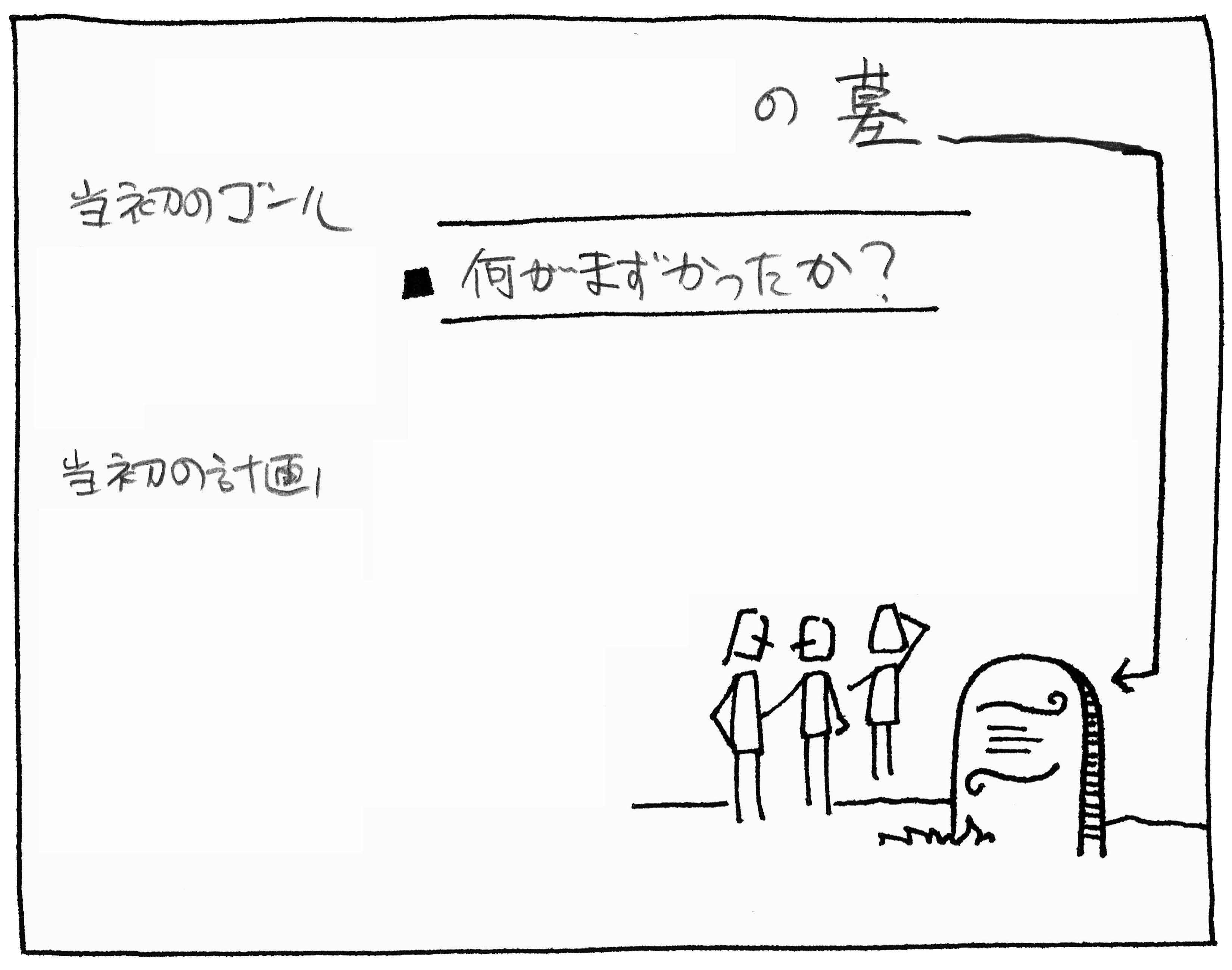 これはチームにとっては、これまでに皆で経験してきたことを顧みて、誰もが認識してはいるものの無視してきた重要な問題やリスクを顕在化させる機会です。手遅れにならないうちに、手つかずのままになりかねない懸念を声にすることができるチャンスなのです。小グループでこうした問題を明らかにするには、簡単なディスカッションで十分でしょう。大人数のグループなら「貼り出し法」やリストの作成が必要かもしれません。