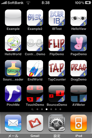 - iPhone/iPodあるいはシミュレータに表示されるアイコンの右下に章を表す数字やアルファベットが付いています(最初の例は除く)。