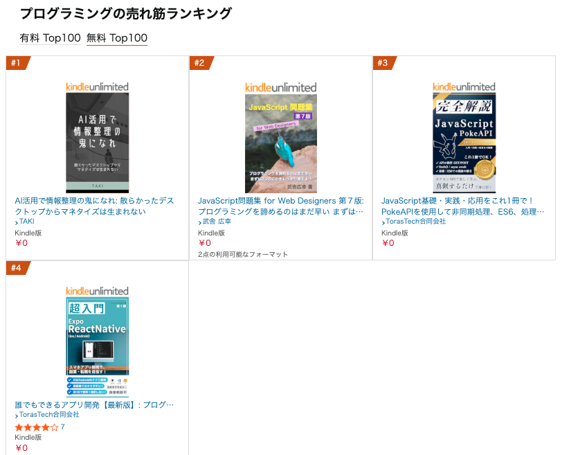 Kindle版が「プログラミング」の売れ筋ランキング(無料 Top 100)で#2になりました(2025年9月18日)