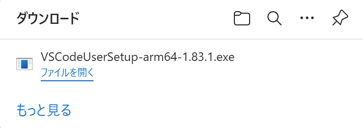 VS Code(Visual Studio Code)のWindowsへのインストールは次の手順で行ってください(macOSへのVS Codeのインストール方法はこちらです)。 Microsoft Edgeを使った場合です(ほかのブラウザの場合は、1.でダウンロードしたファイルをダブルクリックして3.に進んでください)