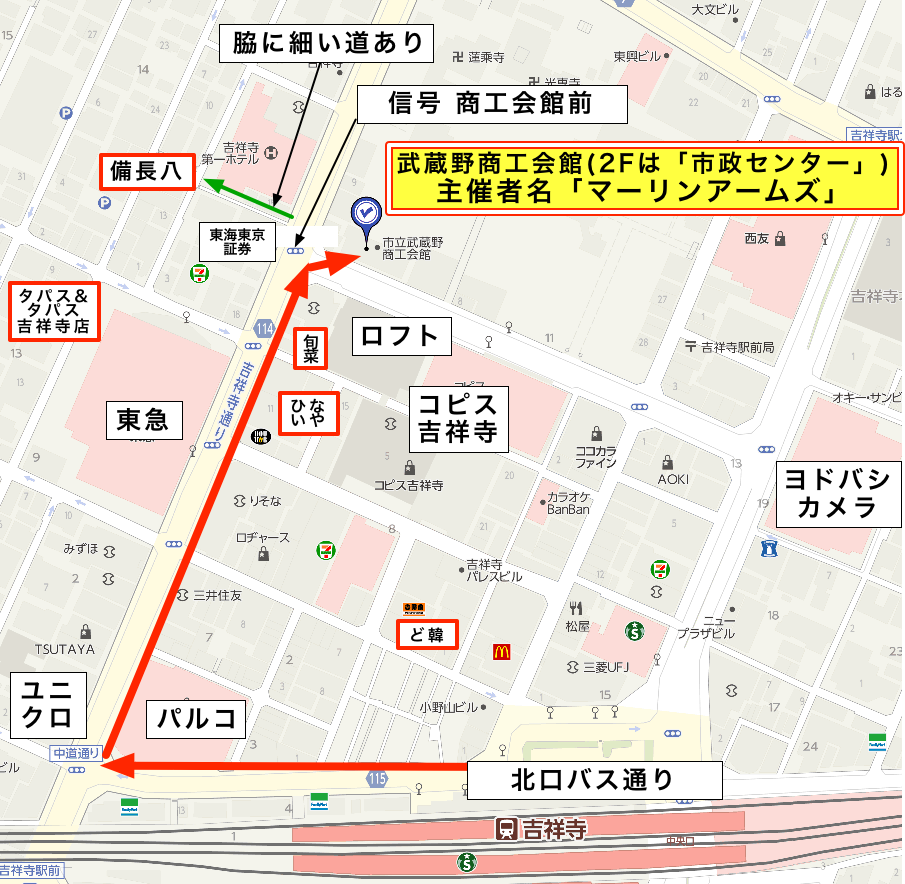 - 南口側(公会堂側)には井の頭公園(徒歩5分弱)、丸井(駅からすぐ)、ヤマダ電機などがあります。