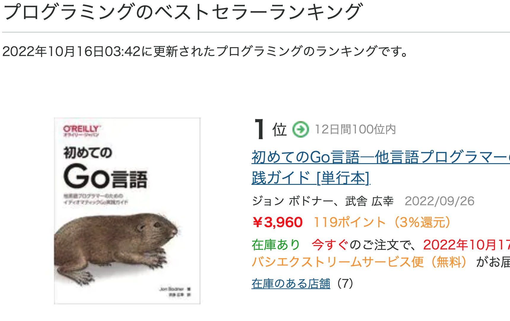 例題や訳者が書いた「付録A Go言語のまとめ」と「付録B 実例で学ぶGo言語入門」を公開中です。