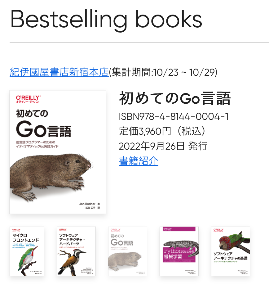 オライリー・ジャパンの「Bestselling books」(丸善丸の内本店。集計期間:10/15 ~ 10/21)で4位になりました(2023年10月25日)
