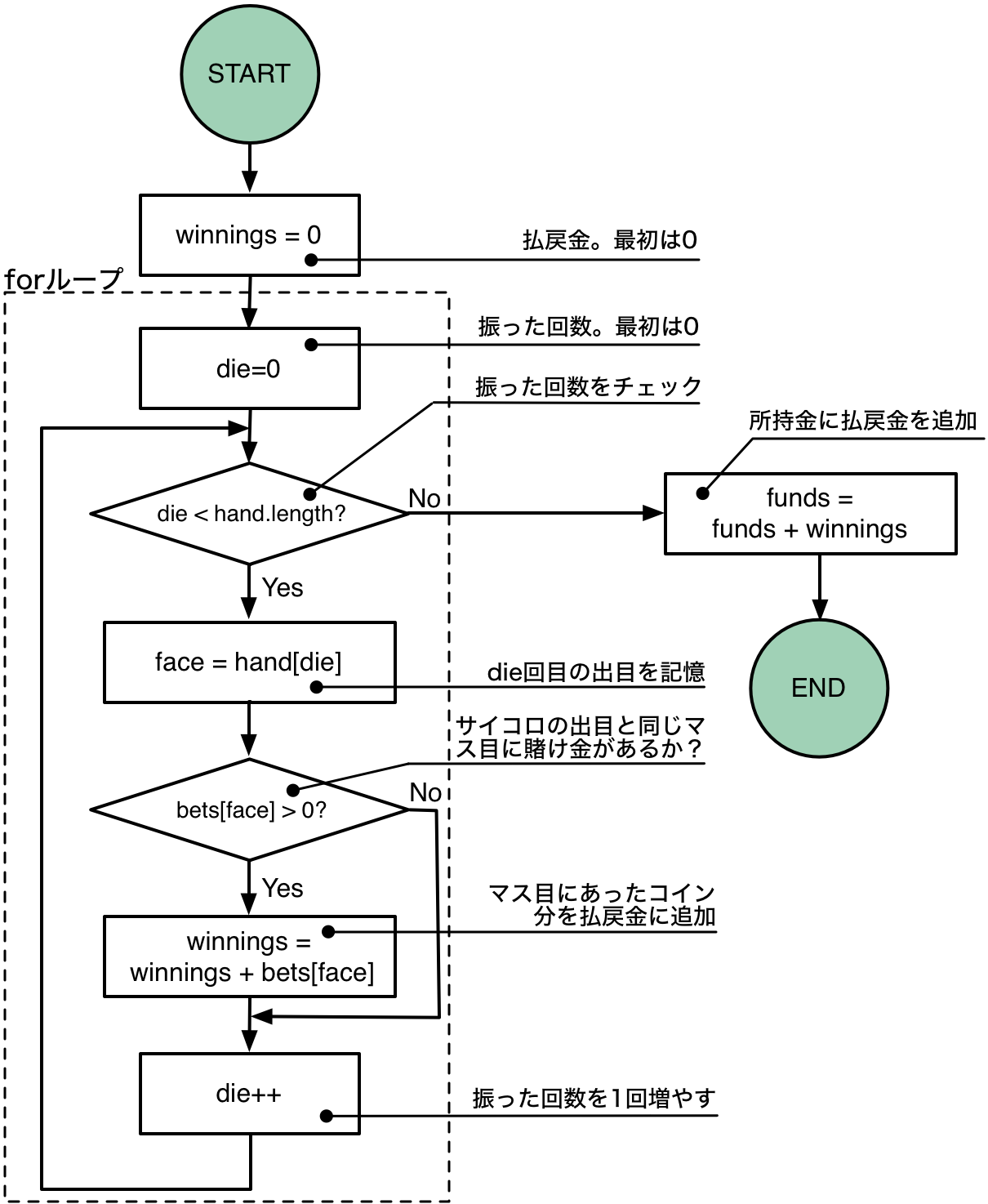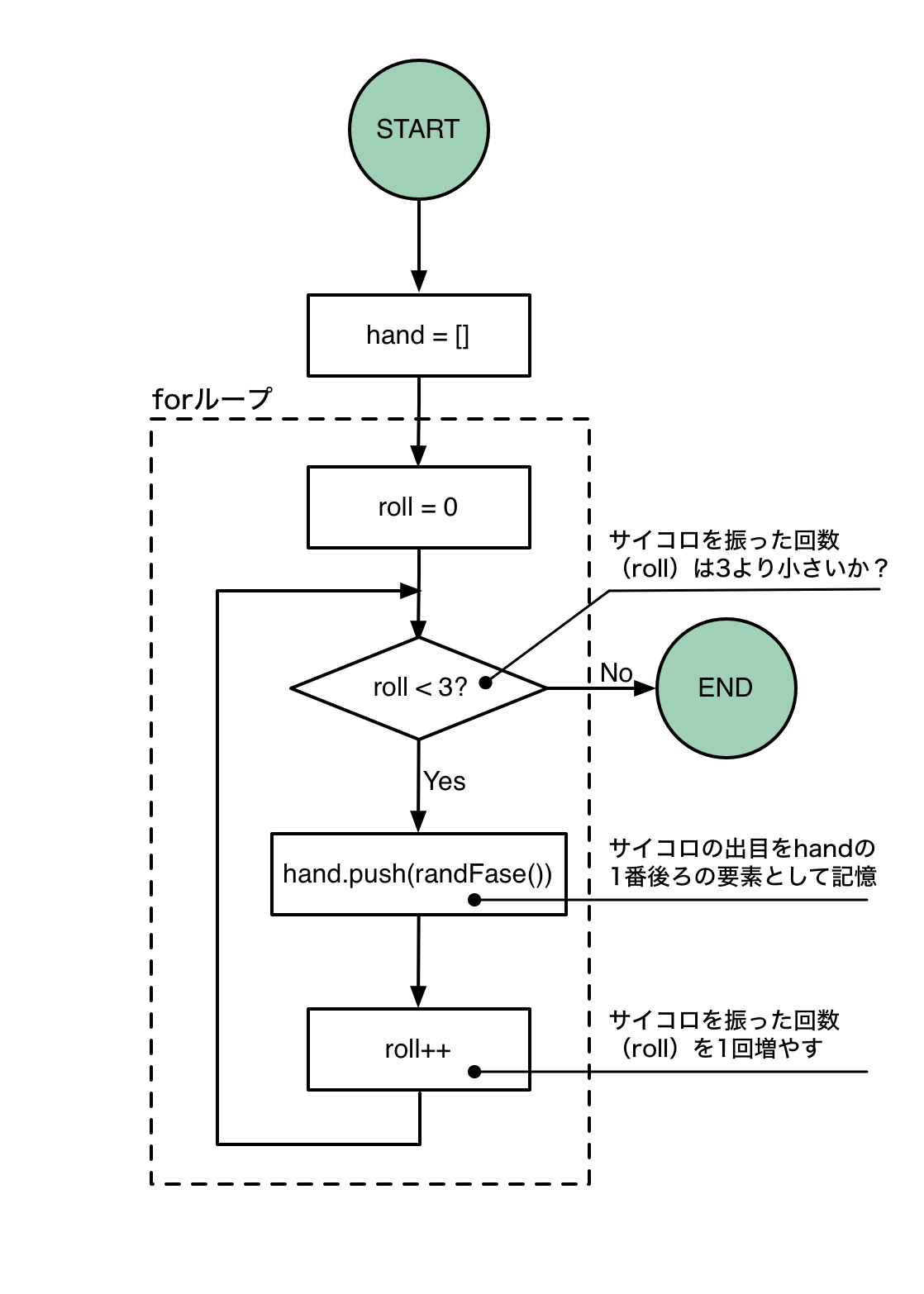 このリンク先の図のようにご訂正ください(forループの条件判定の位置が変です。原文の図のチェックを怠りました。すみません) -