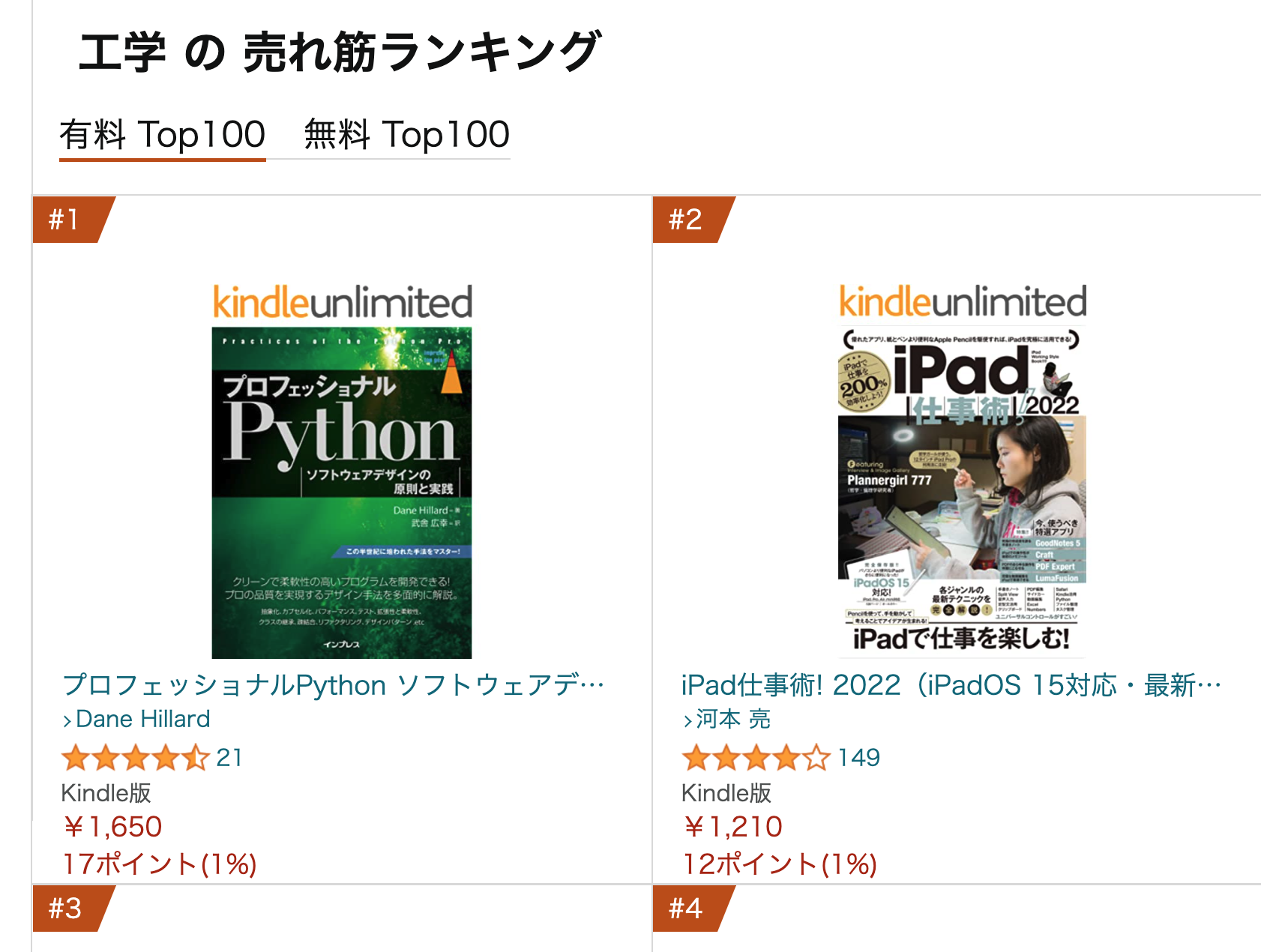 AmazonのKindleストアの工学部門のランキングで1位になりました。全体では204位です(2022年11月24日)